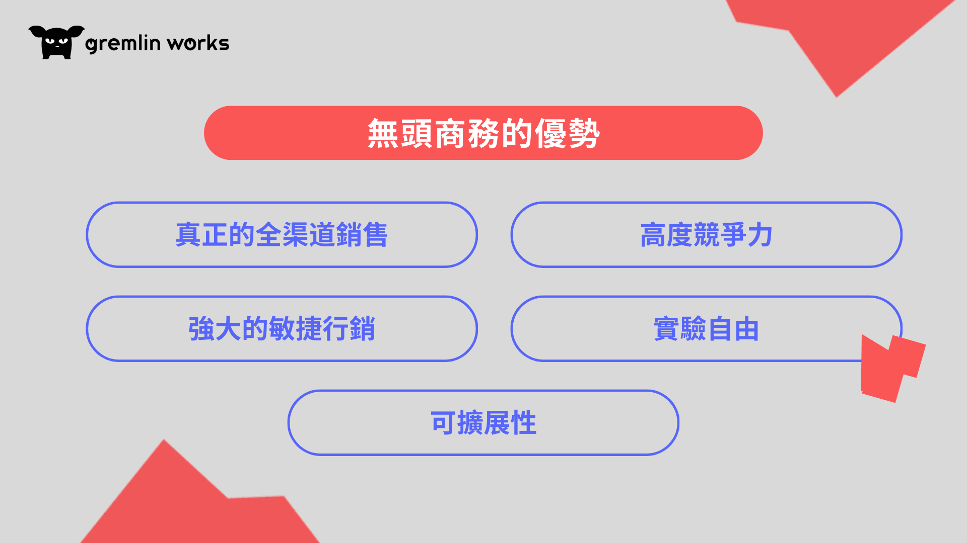 您有聽過無頭商務(Headless Commerce)嗎?近年來無頭商務在電子商務領域中備受矚目,儘管在電子商務領域是一個新名詞,但它為企業和顧客帶來了許多好處。一項調查顯示,86%的業者表示他們的顧客獲取成本正在上升,這意味著企業必須創建能夠吸引顧客的卓越線上體驗,而無頭商務提供靈活、可定制的前端體驗協助企業達到這一目標,隨著越來越多的企業採用這種架構,無頭商務有望成為電子商務領域的主流趨勢。讓我們跟隨Gremlin Works 一同探索無頭商務帶來的無限可能吧!
