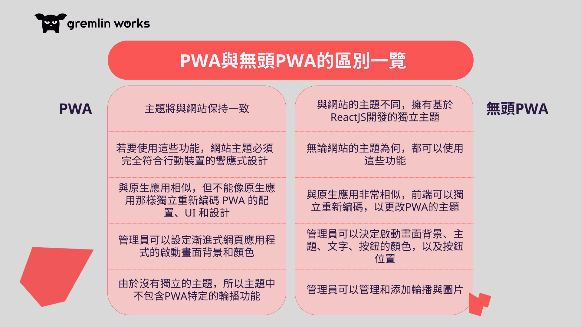 - 標準化:採用流行的技術,無頭PWA可以更快地進行開發,進而達到標準化的目標。