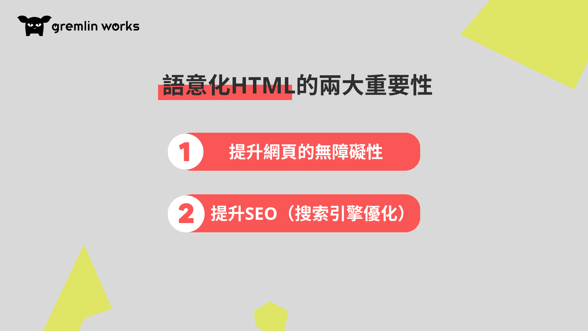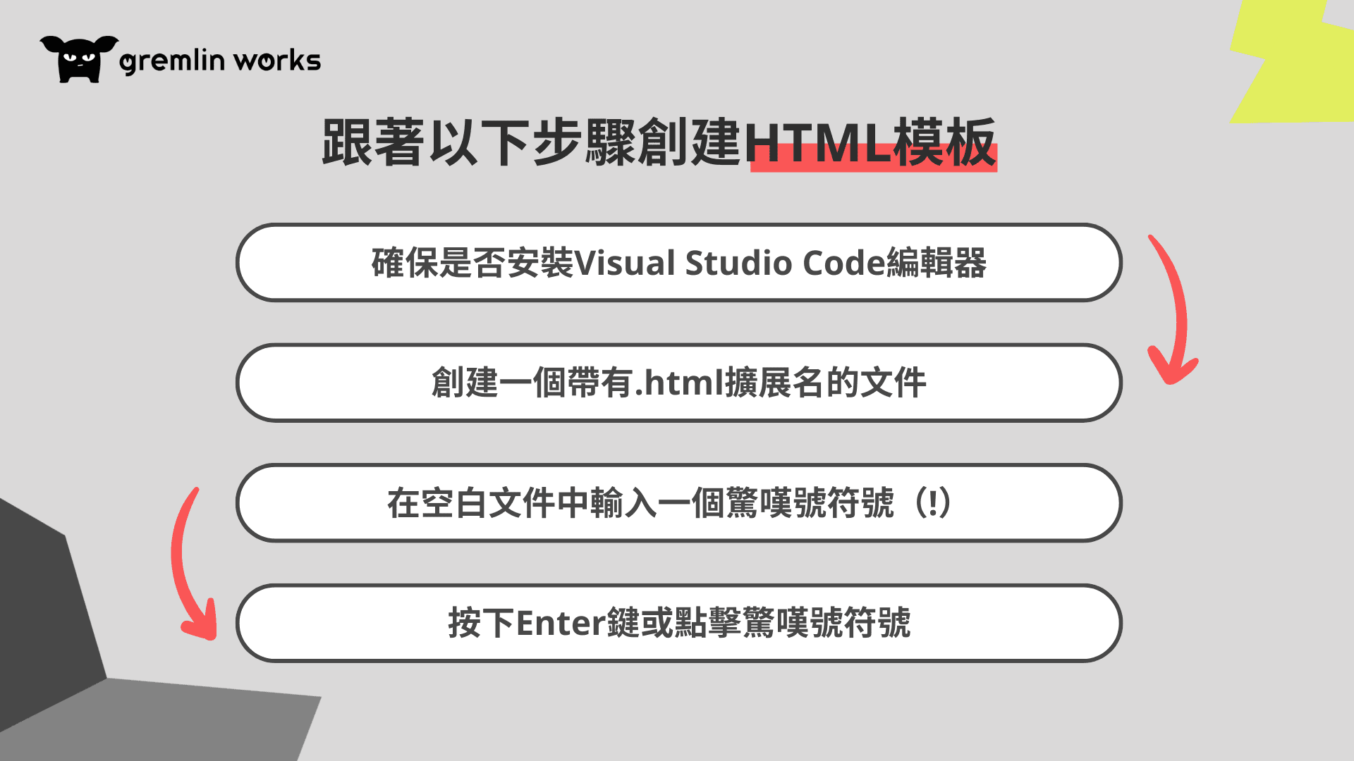 網頁開發初學者們看過來!你不能不知道的 HTML 代碼。當您剛開始接觸網頁開發時,是不是也會很好奇 HTML 是什麼呢?今天就讓 Gremlin Works 帶您進入 HTML 的世界!以下是本文包含的主題: