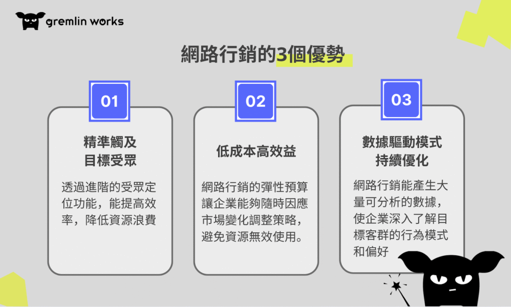 數據驅動的持續優化模式是網路行銷的第三個重要優勢。