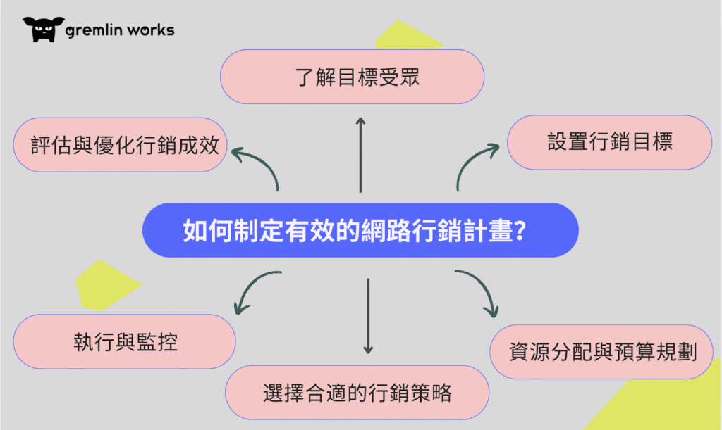 成功的網路行銷計畫需要這六個環節的緊密配合。企業應該保持靈活的思維,隨時根據市場反應和執行成效調整策略,確保行銷資源的最佳運用。