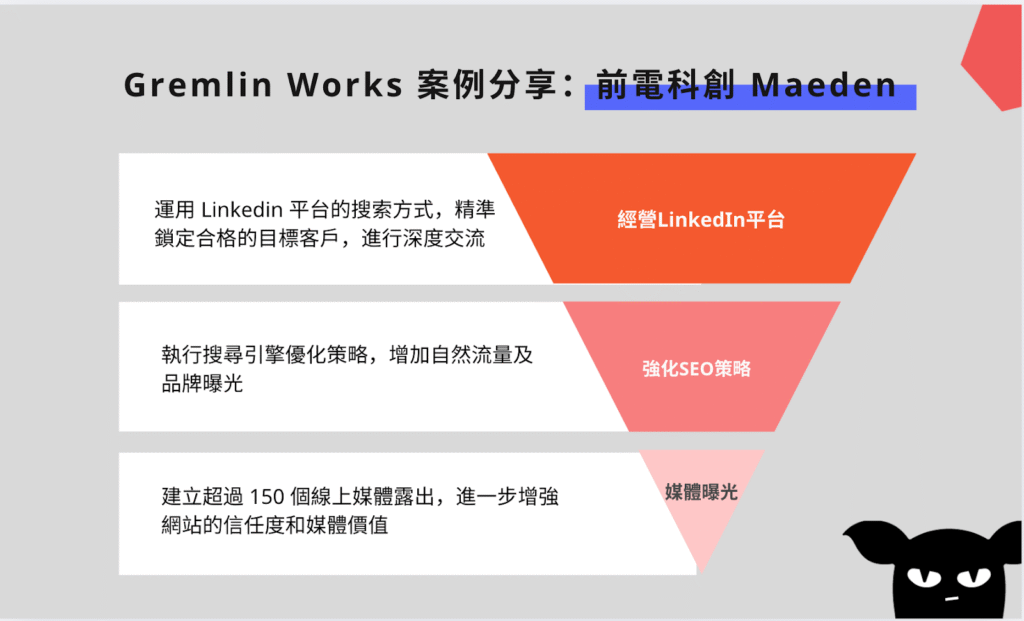Gremlin Works 幫助前電科創(Maeden)透過 SEO 與內容行銷的策略,在B2B領域確立了其行業領導地位。