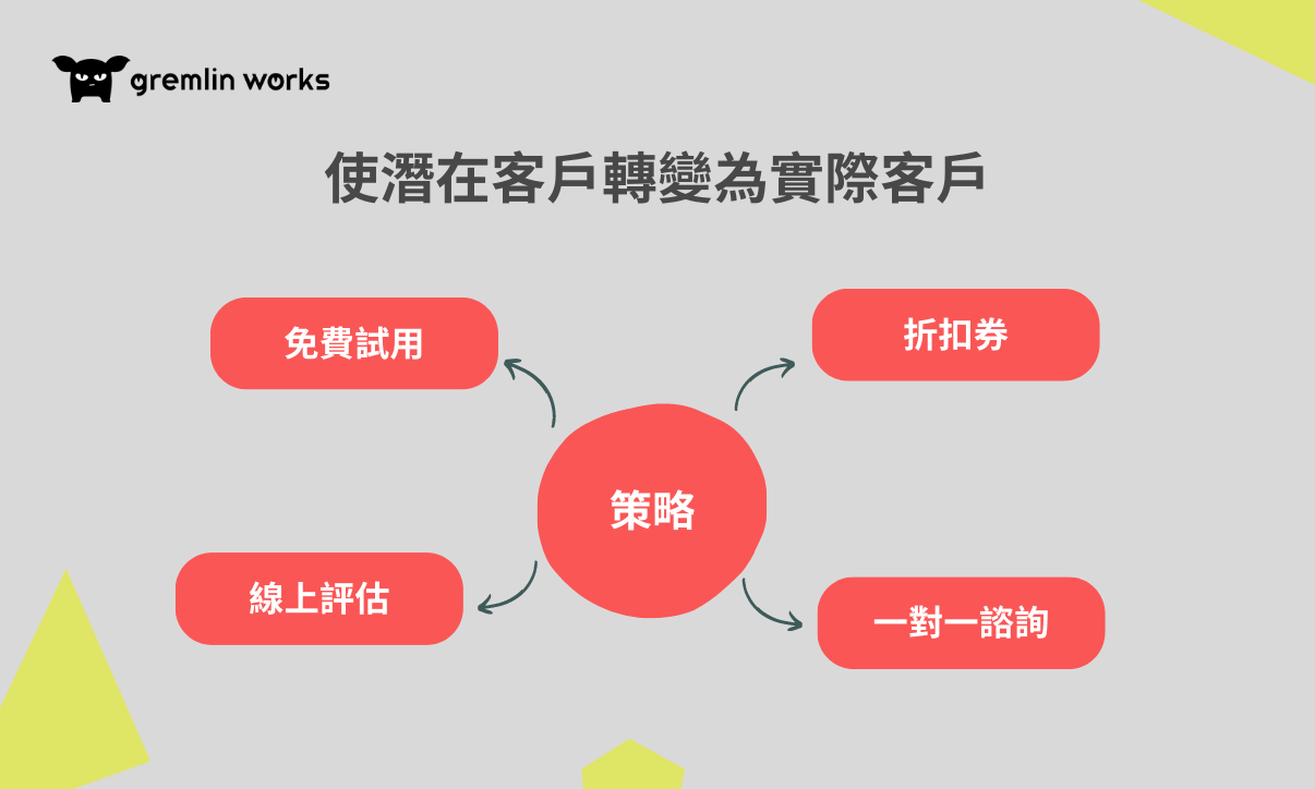 您可以採取甚麼策略來使潛在客戶轉變為實際客戶: