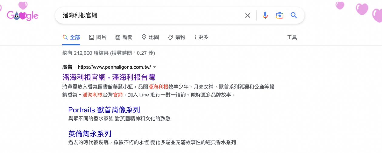 在協助 Penhaligon's 建立台灣官方網站後,我們發現品牌名稱相關的搜尋結果多被仿冒網站或第三方銷售平台占據,導致主動搜尋的使用者難以找到正確的官方資訊來源。