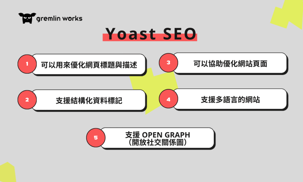 Yoast SEO工具為提升網站排名帶來許多優勢,當然持續產出高品質的文章內容也是不可或缺的。如果不確定產出什麼樣的內容才能增加曝光度,可洽詢SEO公司。 Gremlin Works 提供完整的網站優化服務,從內容面到技術面層層幫您把關,提供專業的建議與經驗豐富的操作服務,讓SEO公司帶您的品牌一起成長!